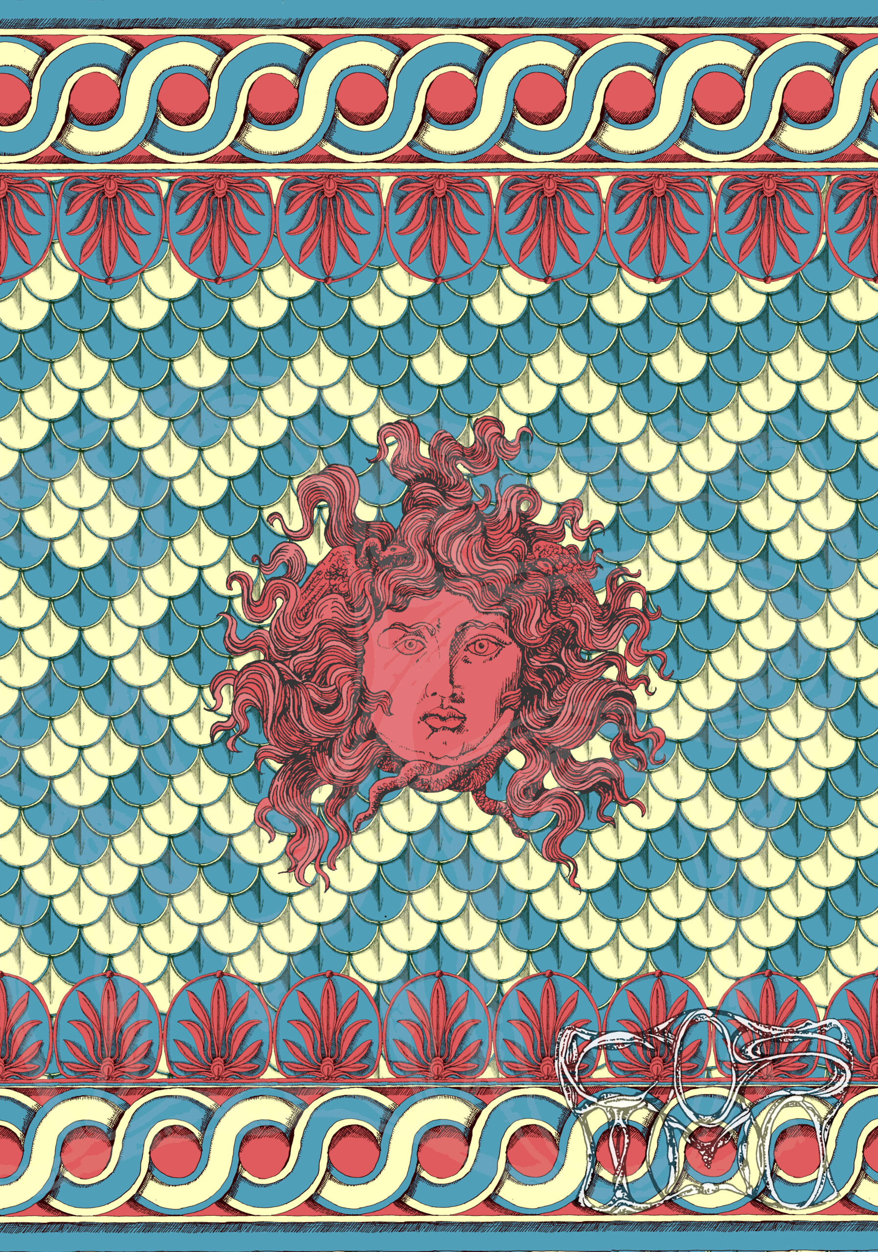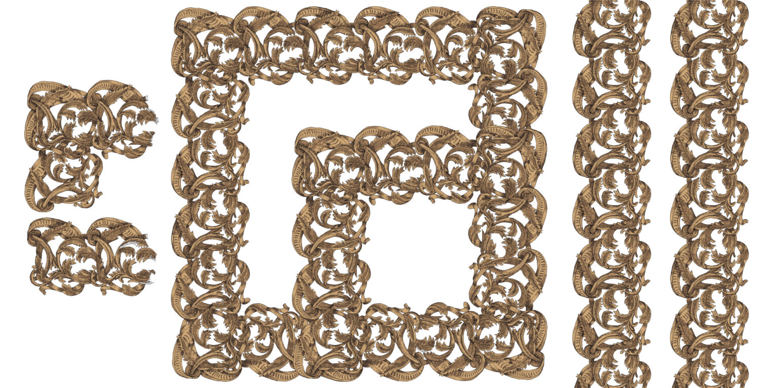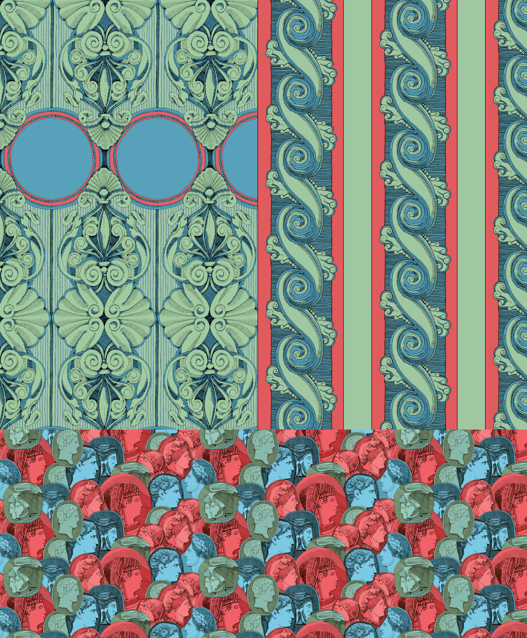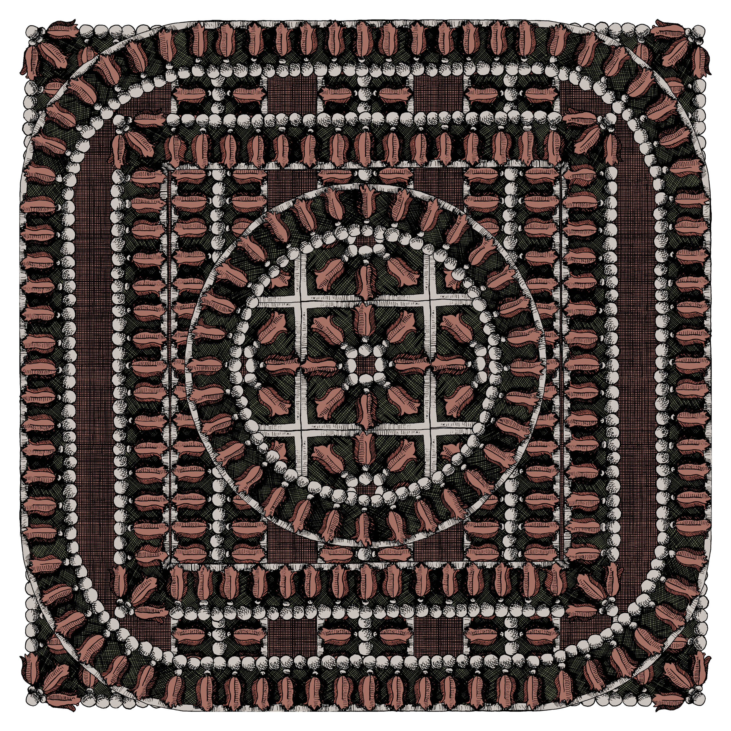 I use pen and ink to create the final transparencies for silk screening. The nature of drawings manualità translates very nicely into files for printing digitally as well. One of the results I respond to is how final results mimic artisan production but with an efficiency of digitally printing. The reverse is very rarely true. Finding that developing designs by hand does not give you problems that developing a design digitally, and then trying to print it manually would. When Patterns are formulated manually, then digitized the only part of the process utilizing a computer is colorization of designs. I began to digitize my prints in 2018. Proceeding on this journey I am increasingly convicted that digitization should be a means to an end, without the hand of an artisan the end results are vapid. Visceral over virtual. Developing pattern families there is an extensive research process used to draw out themes and combinations that work together in a collection. Resulting print families are composed of different elements such as geometrics, organic repeat patterns, running borders, stripes and meandering borders. Others can be interlocking patterns using the same base tile form over several thematic variations.